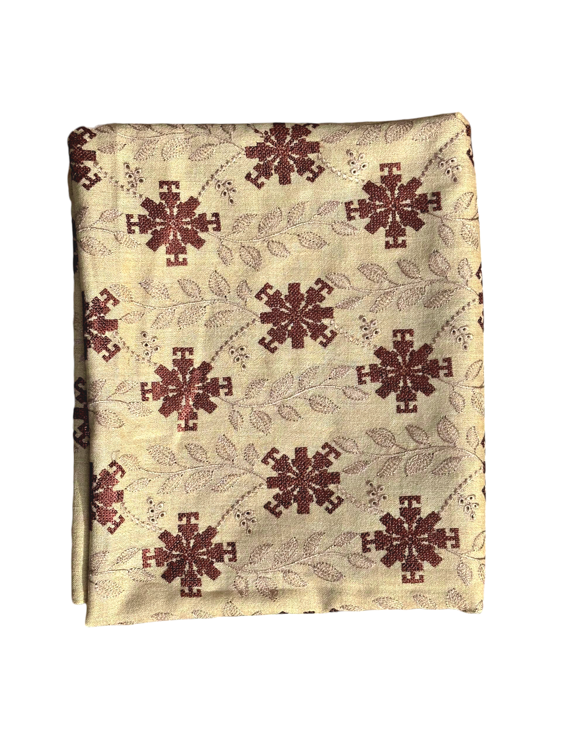 Crafted From High Quality Wool It Provides Excellent Warmth Softness Durability While Maintaining A Graceful Drape. The Detailed Woven Embellished Pattern Adds Depth Sophistication Making It Ideal For Formal Gatherings Festive Occasions Premium Winter Styling.